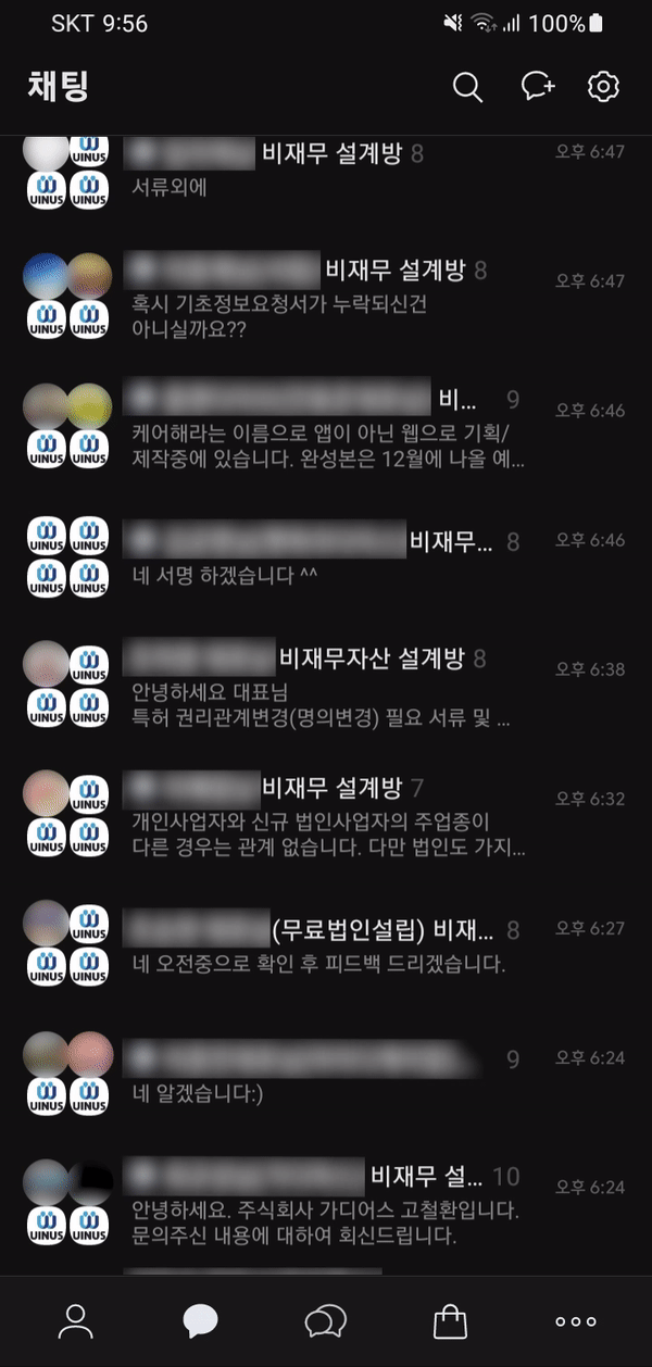 <유인어스 매니저의 실제 카카오톡 채팅목록>