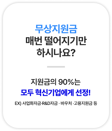 무상지원금 1억으로 시작해, 유상자금까지 10배 더 받을 기업으로 만들어드립니다.